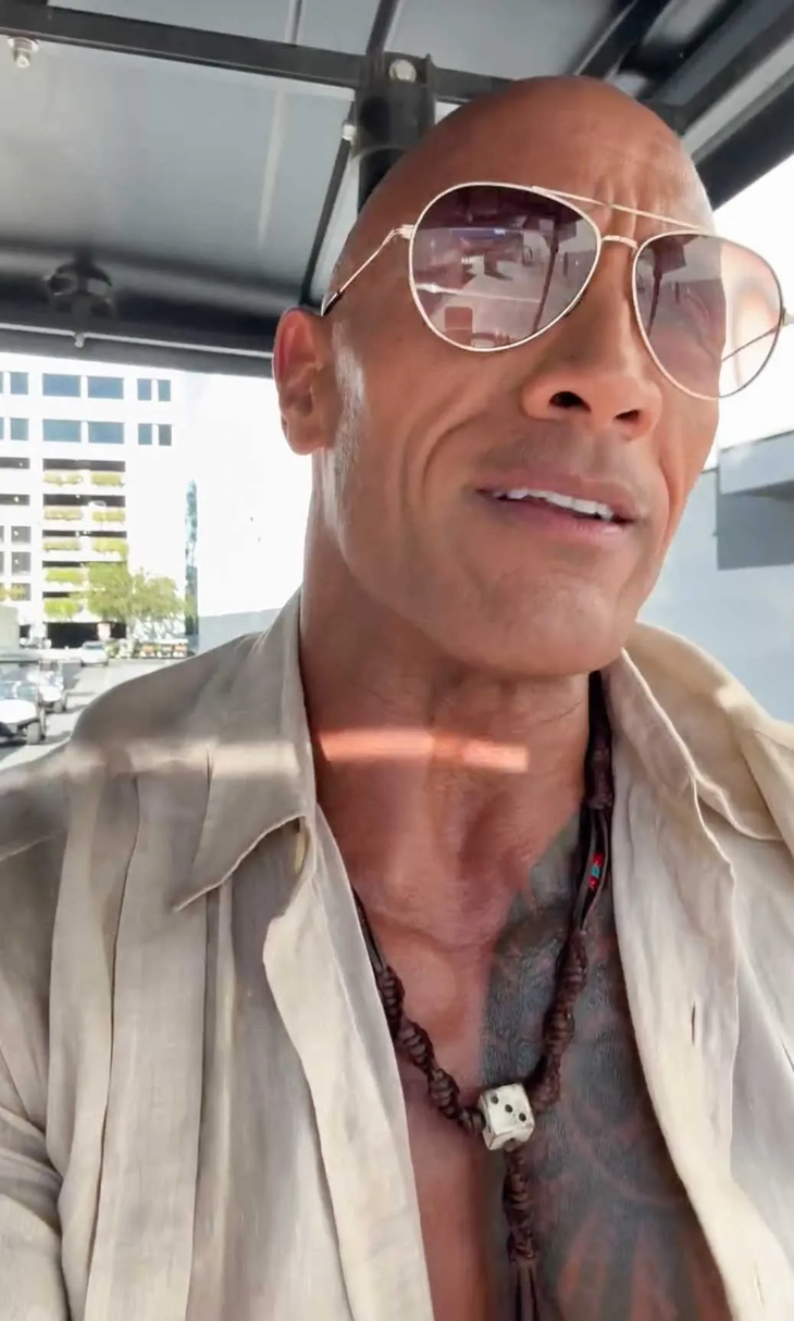 "Estos son los dados del Jumanji original con Robin Williams como muestra de respeto", dijo Johnson mientras mostraba un collar tejido con un dado desgastado de un juego de mesa en el centro. "Es una forma de honrar a Robin y a toda la franquicia que él inició mientras filmamos nuestro último Jumanji . El gran final. ¡A rodar!".