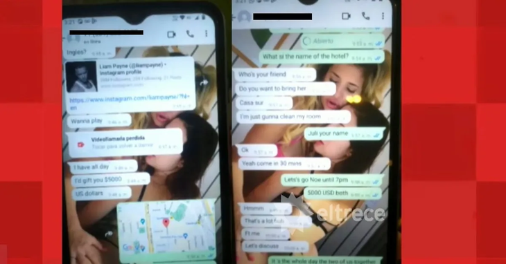 En la conversación que tuvo lugar en horas de la mañana, se ve la forma en que Liam Payne negocia el cachet en dólares y tiempo de duración para que las mujeres vayan a visitarlo al hotel.