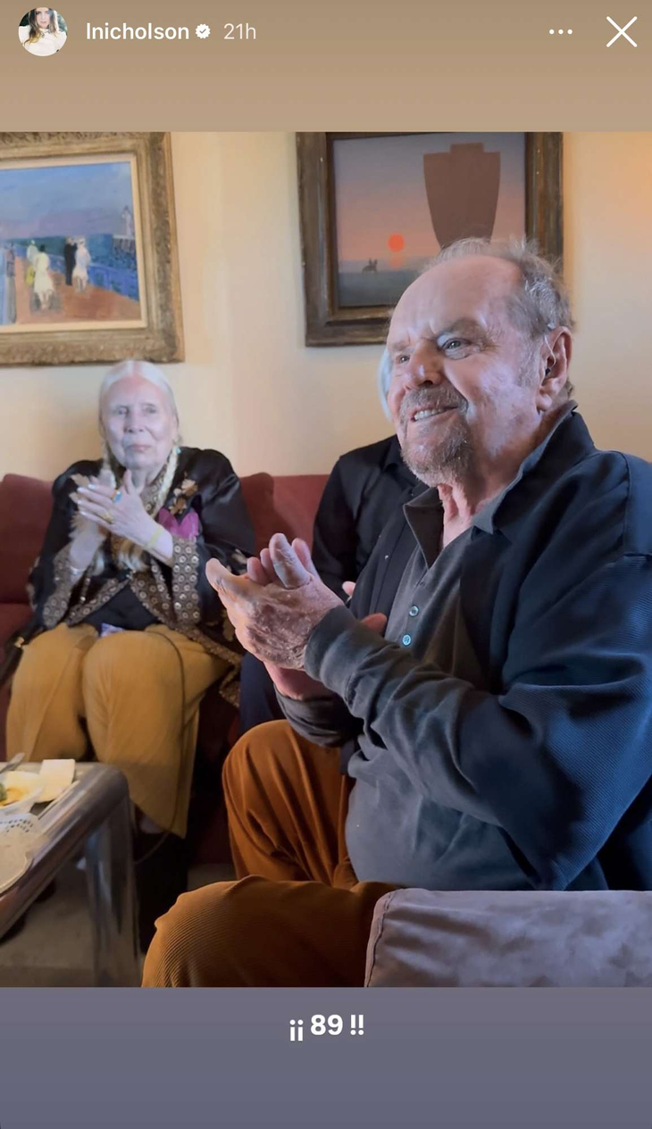 La foto, publicada en las historias de Instagram de Lorraine, muestra a Jack aplaudiendo y sonriendo con Joni Mitchell sentada a su lado. Lorraine no indicó cuándo se tomó la foto, sino que simplemente escribió en ella: “¡¡89!!” después de publicar una foto de un Jack más joven con una camiseta de Coca-Cola con “¿89?”.