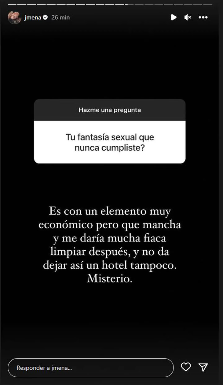 “¿Tu fantasía sexual que nunca cumpliste?”, quiso saber un usuario. Lejos de esquivar la pregunta, Barón fue al frente: “Es con un elemento muy económico, pero que mancha y me daría mucha fiaca limpiar después, y no da dejar así un hotel tampoco. Misterio”.