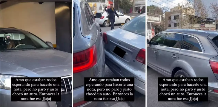 Mientras salía del garage de los estudios de streaming ubicados en Palermo, la actriz quiso evitar hablar con la prensa que la esperaba desde hace varios minutos y terminó chocando un auto que estaba estacionado.