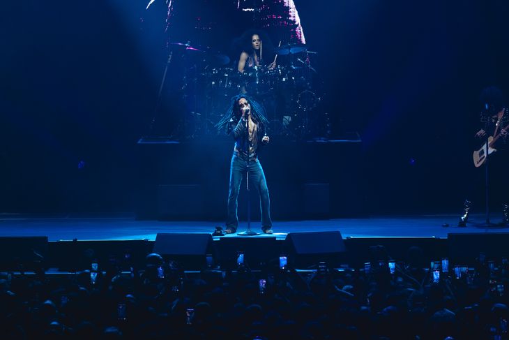 Las visuales abstractas sólo acompañaron el show, a pesar de que la presencia de Kravitz era suficiente, y vale destacar que una vez más volvió a burlarse del paso del tiempo. Muchas veces las personas van a un show para disfrutar de esos últimos destellos que tienen para ofrecer los artistas en decadencia o que "están pegando la vuelta". Sin embargo, nada de eso parece sucederle a Lenny, quien no le erró a una sola nota de sus solos de guitarra y, como si fuera poco, cantó como se lo puede escuchar en las grabaciones originales, regalándole a los fanáticos su característica voz, que se acomoda entre la aspereza y que ofrece una increíble variedad de tonos, desde su voz de pecho natural hasta increíbles falsetes.