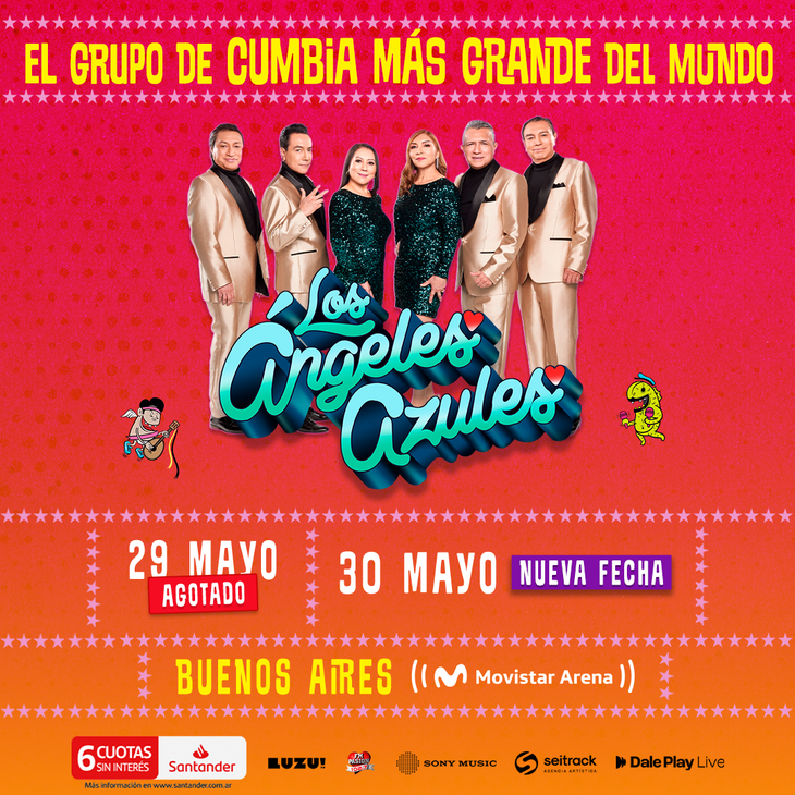 Tras el gran éxito de su anuncio y la enorme respuesta del público, Los Ángeles Azules confirman una segunda fecha en el Movistar Arena de Buenos Aires y suman un nuevo show el 30 de mayo, ampliando su gira por la Argentina.
