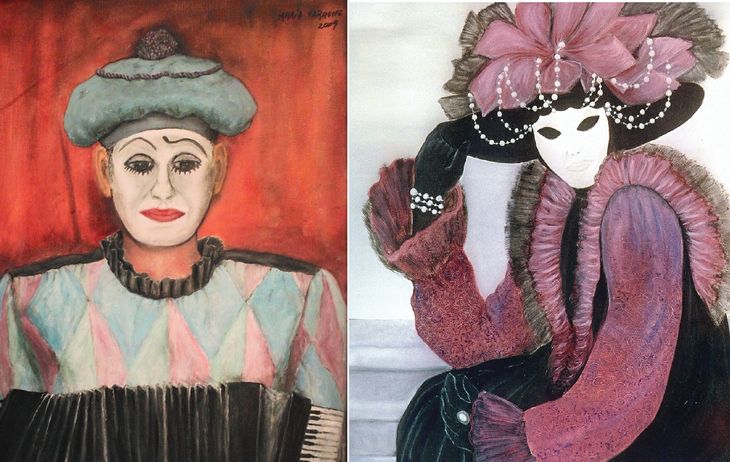 “Al ‘Arlequín”, tal como denominé a la obra, lo conocí en Moscú. Era un joven que trabajaba como camarero en el hotel donde yo residía. Él me servía el desayuno y hablaba muy poco inglés, pero lo suficiente para entendernos. Era hijo de un matrimonio de trapecista que, en un salto peligroso, se mataron a la vez. Él también actuaba como trapecista y, al igual que sus padres, tuvo una caída importante. No le quedaron secuelas físicas pero quedó traumatizado, por lo que decidió transformarse en payaso y divertir a los niños. Poco después, el dueño debió cerrar el circo y él perdió el trabajo. Lo único que le dejó fue un pequeño acordeón, con el que tocaba en la calle. Lo pinté como un arlequín, con su acordeón.”