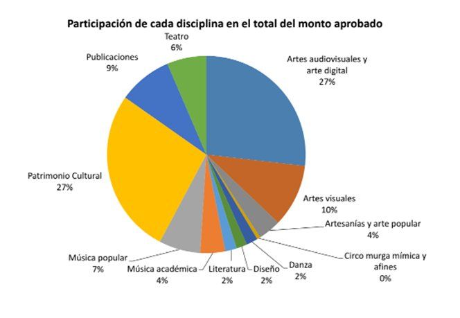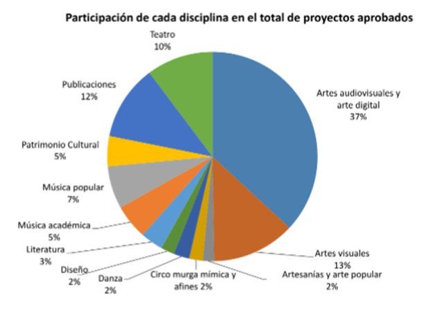 Participaron proyectos artístico-culturales sobre investigación, capacitación, difusión, creación y producción de artes audiovisuales y digitales, danza, teatro, circo, murga, mímica y afines, literatura, artes visuales, artesanías y arte popular, diseño, música académica, música popular, patrimonio cultural, publicaciones, radio, televisión y sitios de Internet con contenido artístico y cultural.