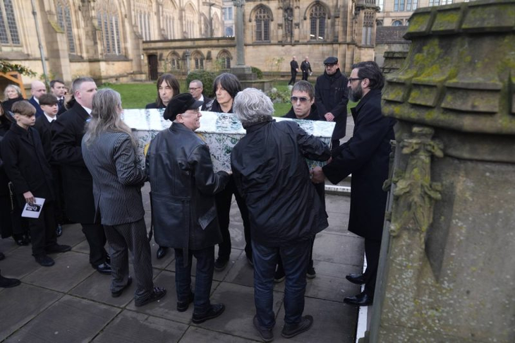 Cuando terminó el servicio, Liam Gallagher y los miembros de Stone Roses, Reni y John Squire, estuvieron entre los que sacaron el ataúd de la catedral.