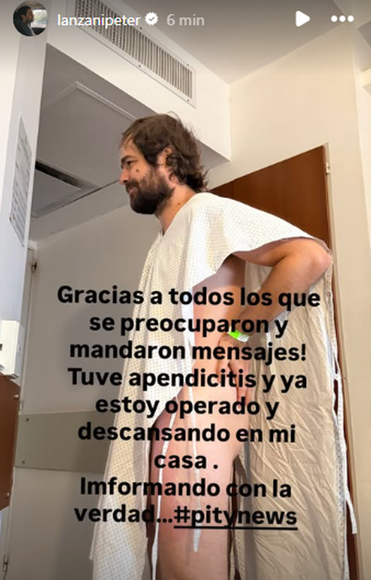 "Gracias a todos los que se preocuparon y mandaron mensajes! Tuve apendicitis y ya estoy operado y descansando en mi casa". Escribió Lanzani junto a una imagen dónde se lo ve en el sanatorio.