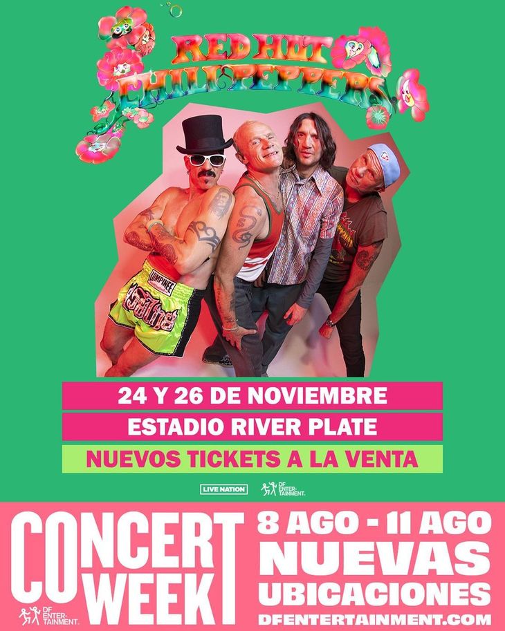 Desde hoy martes 8 al viernes 11 de agosto todos los amantes de la música en vivo deberan estar atentos: llega el primer #DFConcertWeek en Argentina. La primera gran noticia llega para los fanaticos de los Red Hot Chili Peppers, ya que se liberaron nuevas entradas para sus shows del 24 y 26 de noviembre en River Plate.