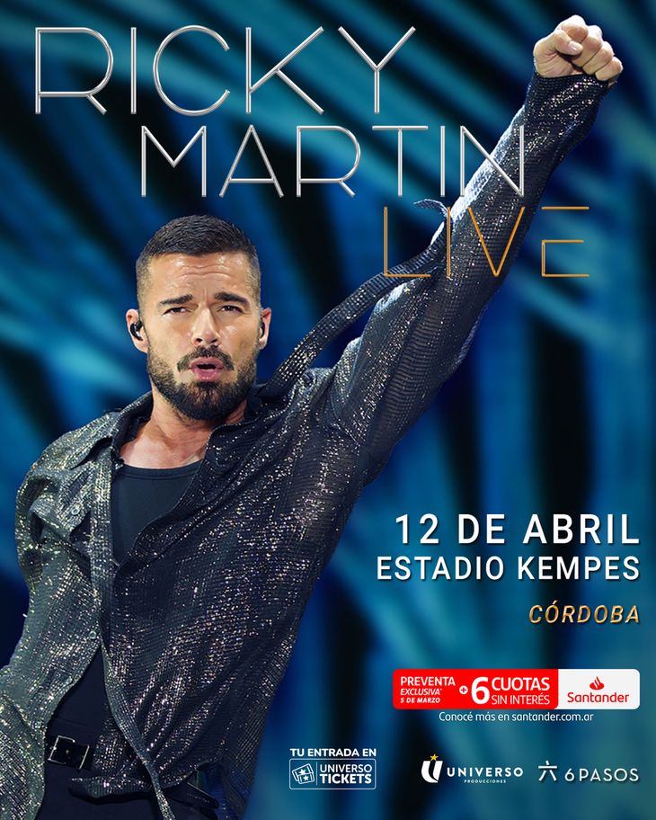 Tras anunciar la semana pasada sus presentaciones del 7 de abril en Montevideo, el 10 de abril en Asunción y el 18 de abril en Buenos Aires, y ayer el 14 de abril en Rosario; el tour suma ahora una nueva parada el 12 de abril en el Estadio Kempes. Allí, Ricky Martin volverá a reencontrarse con el público local en una noche que promete ser uno de los eventos internacionales más destacados del año.