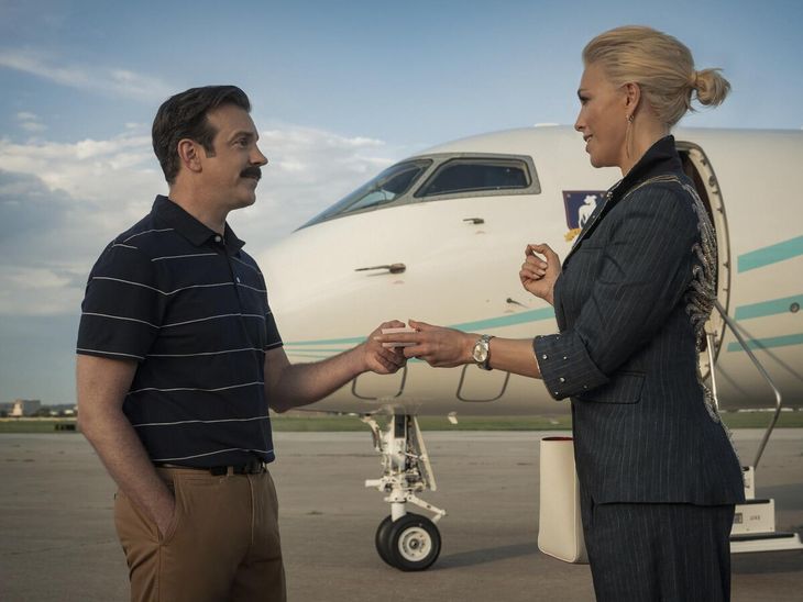 En la última foto, Ted y Rebecca (Hannah Waddingham) aparecen frente al avión de Richmond. Podría ser ella volando a Kansas para reclutarlo para el nuevo puesto de entrenador. Se ve a Ted entregándole a Rebecca una caja de sus famosas galletas caseras.