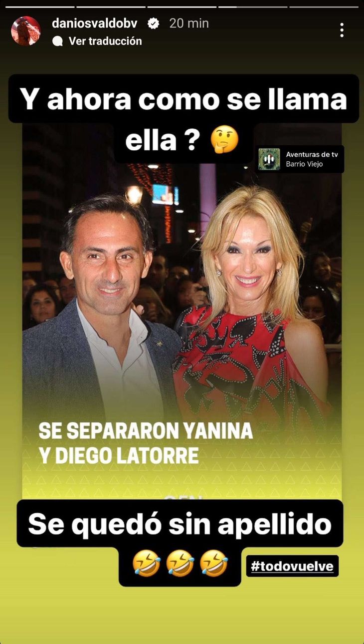 El exfutbolista argentino Daniel Osvaldo apuntó contra la panelista de LAM, Yanina Latorre, tras informar que se separó de su pareja Diego. "Yanina, ahora, ¿cómo se llamará?", preguntó el deportista en sus redes sociales.