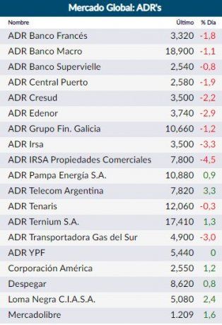 De esta forma, el S&P Merval ajustó sus cotizaciones a las mermas anotadas por los ADRs argentinos, que cedieron más de 4% en promedio el lunes en Nueva York.