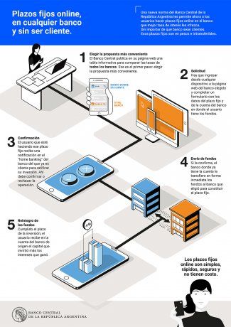2 - Concretar la solicitud: hay que ingresar desde cualquier dispositivo (notebook, PC, smartphone, tablet) a la página web del banco elegido y completar un formulario con los datos del plazo fijo y de la cuenta de la entidad financiera en donde el usuario tiene los fondos.