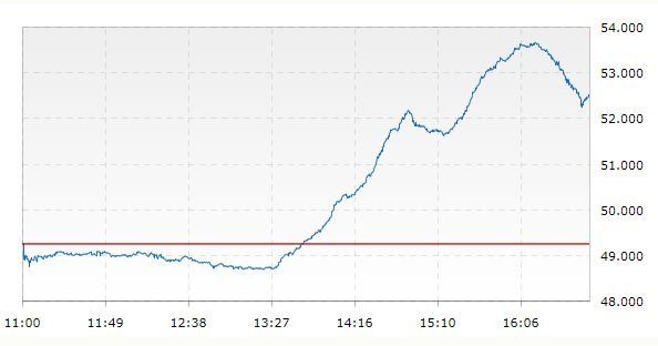 Lo mismo sucedió con el índice S&P Merval de Bolsas y Mercados Argentinos (BYMA) que, tras comenzar la jornada en caída, desde las 13:30 hs. comenzó a revertir esa tendencia para culminar con un salto del 6,6%, a 52.504 unidades, nuevo máximo histórico nominal.