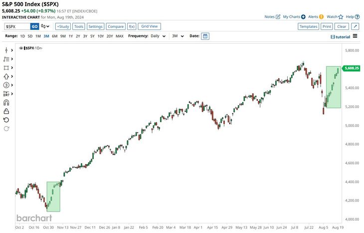 Los datos disponibles indican que las acciones estadounidenses históricamente tienden a subir en torno al simposio anual en Jackson Hole. El S&P 500 ha repuntado en las dos semanas previas y posteriores a la conferencia de la Fed, con mayores repuntes luego del discurso del presidente la Fed. Por ejemplo, si este martes el S&P 500 extiende el verde, lograría su noveno día consecutivo de ganancias, lo que supondría su racha ganadora más larga desde 2004, según Factset.