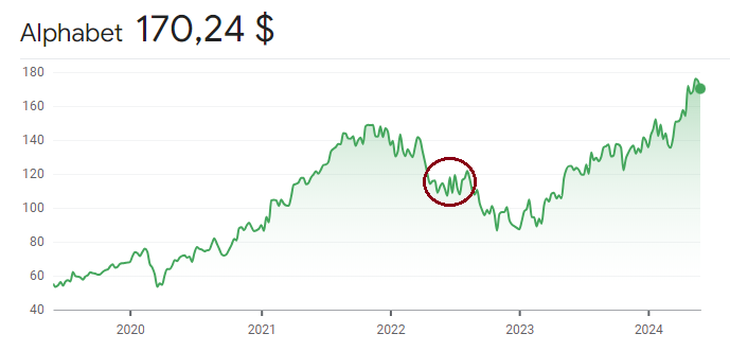 Sniechowski coincide en que, puntualmente, en el caso de $NVDA es difícil determinar si en el corto plazo este efecto será de la magnitud que fue en el caso de $GOOGL (ver en el gráfico) por el rally que viene teniendo la empresa en los últimos meses.