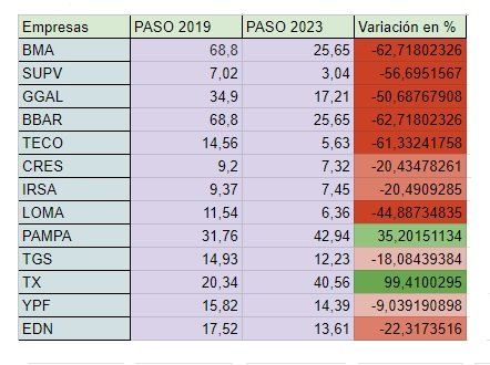 A casi 4 años de tal suceso, Ámbito se propuso develar cómo llegan las principales empresas argentinas y su cotización si se compara los precios actuales con el último día hábil previo a las elecciones: el 9 de agosto del 2019. ¿Qué acciones se recuperaron y cuáles siguen más rezagadas?