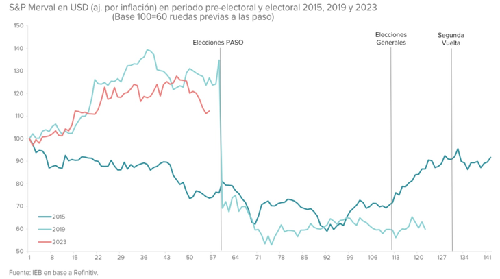"Hoy el Merval se encuentra cerca de u$s800, un 20% abajo que el día pre-PASO de 2019, aunque 30% por encima del cierre de aquel black monday. Creemos que hay upside de cara a las elecciones, pero la implementación de un nuevo plan de estabilización fiscal-monetario conlleva riesgos de ejecución y el balance riesgo/retorno en el Merval no es tan evidentemente como hace un año", cerró Fera.