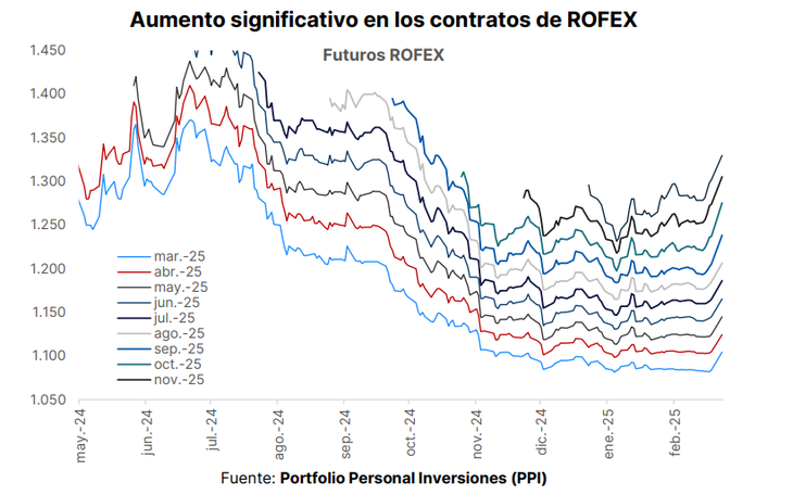 “Es evidente que esta reacción del mercado se debe a los recientes comentarios de Milei sobre un posible acuerdo con el FMI. Aunque circulan rumores de que el nuevo acuerdo no incluiría modificaciones al régimen cambiario (en el corto plazo, al menos), los agentes prefirieron incrementar la cobertura en el mercado de futuros”, consideró Portfolio Personal Inversiones (PPI) en un reporte para sus clientes.