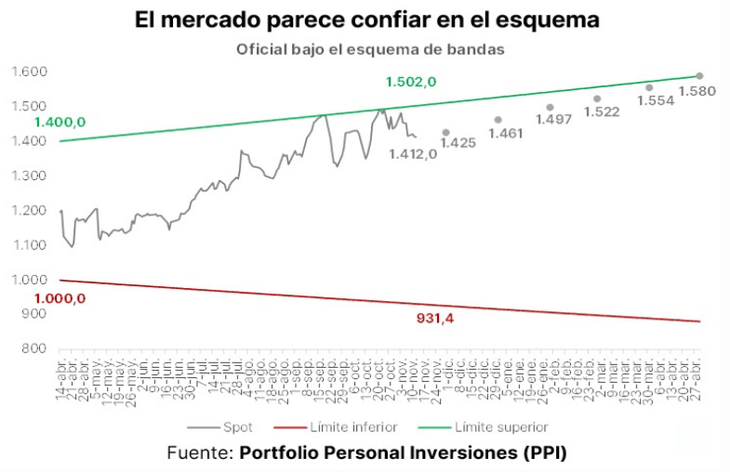 Así lo mostró un informe de PPI de hace unos días, que proyectaba que el dólar se mantendría dentro del techo de la banda hasta abril inclusive. Con los datos de este lunes, esa proyección se estiró ahora hasta julio.