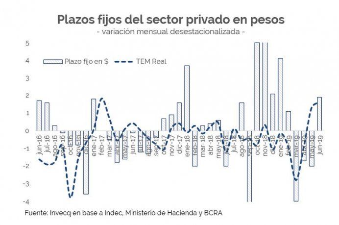 Al compás de la calma cambiaria de las últimas semanas y ante una política monetaria que continúa mostrando un claro sesgo contractivo, la demanda por los activos en pesos vuelve a recuperarse y los depósitos en plazos fijos del sector privado crecen por primera vez desde el mes de febrero, de forma desestacionalizada.