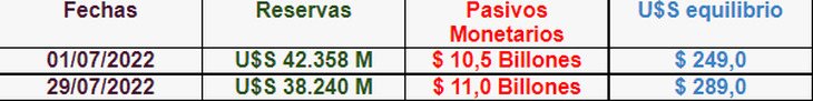 Desde que se fue Martín Guzmán las reservas cayeron en U$S 4.000 millones y los pasivos monetarios crecieron $ 500.000 millones. El dólar de equilibrio pasó de $ 249 a $ 289, esto implica que el viernes el dólar MEP, que cerró en $ 276,60, tiene un precio de oferta, aún no es ganga como cuando estaba en $ 200.