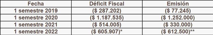 *El déficit del primer semestre 2022 corresponde a los meses de enero a abril 2022.