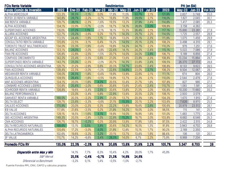 "Recordemos que, si bien estos fondos dada la composición de su cartera suelen presentar volatilidades superiores, durante junio la misma disminuyó considerablemente si lo comparamos con el resto de los meses. De tal modo, durante el sexto mes del año, reportaron valores promedios cercanos a los 28 puntos porcentuales", indicó PPI.