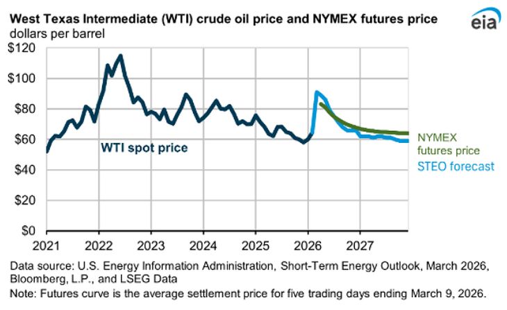 A su vez, desde la EIA anticipan que los precios caerán por debajo de u$s80 el barril en el tercer trimestre y que rondarán los u$s70 para fin de año. De cara a 2027, el promedio proyectado alcanza los u$s64. "Este escenario es altamente dependiente de los supuestos sobre duración del conflicto y el ritmo de recuperación de la producción", agregó Vlassich.