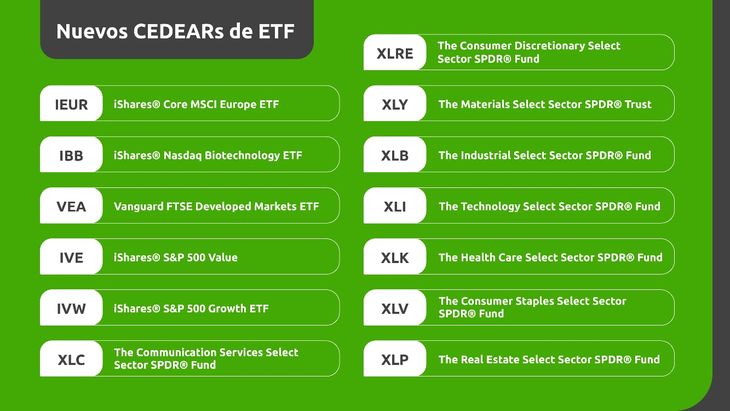 Lanzan 13 nuevos Cedears de ETF vinculados a sectores clave de los mercados internacionales