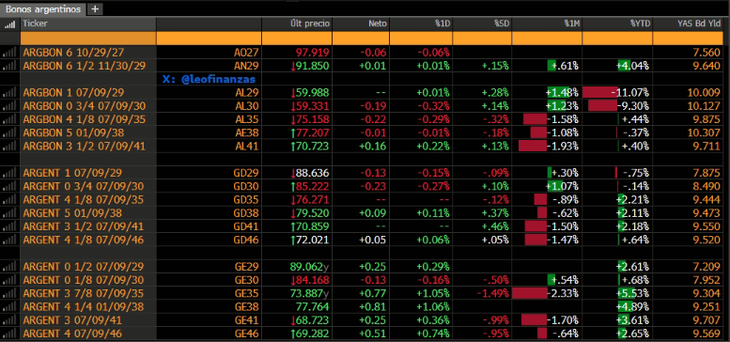 En la jornada previa, los más beneficiados en moneda local fueron los bonos CER, seguidos de los duales y, por último, las Lecap, en tanto que los dollar-linked retrocedieron. Para la deuda soberana en dólares fue una jornada positiva, con subas por encima del 1% en ambas legislaciones.