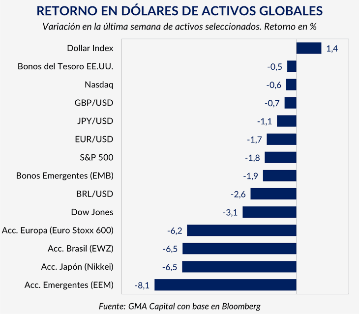 El recrudecimiento del conflicto volvió a activar episodios de "flight to quality", es decir, el desplazamiento de los inversores hacia activos considerados refugio. Según un informe de GMA Capital, el principal canal de transmisión hacia los mercados es el impacto en el precio del petróleo y en las expectativas de inflación global.