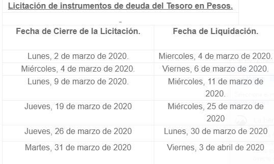 Durante la primera quincena, habrá otras dos licitaciones; el miércoles 4 de marzo y el lunes 9, con liquidaciones correspondientes fijadas para el 6 y el 11 de marzo, respectivamente.