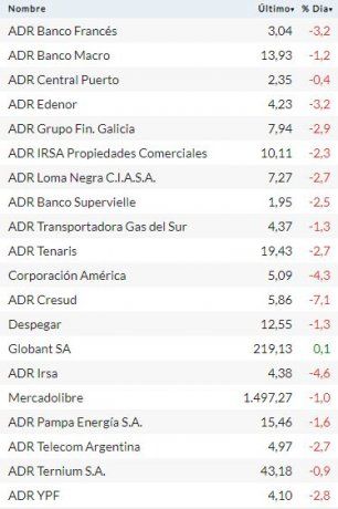 Bajo este complejo escenario, los ADRs de empresas argentinas se hundieron hasta 7,1%, con bajas lideradas por Cresud. Al podio de los peores recorridos del día se subieron los activos de Loma Negra (-6,6%); e IRSA (-4,6%). Solo lograron escapar al signo rojo las acciones de Globant (+0,1%).