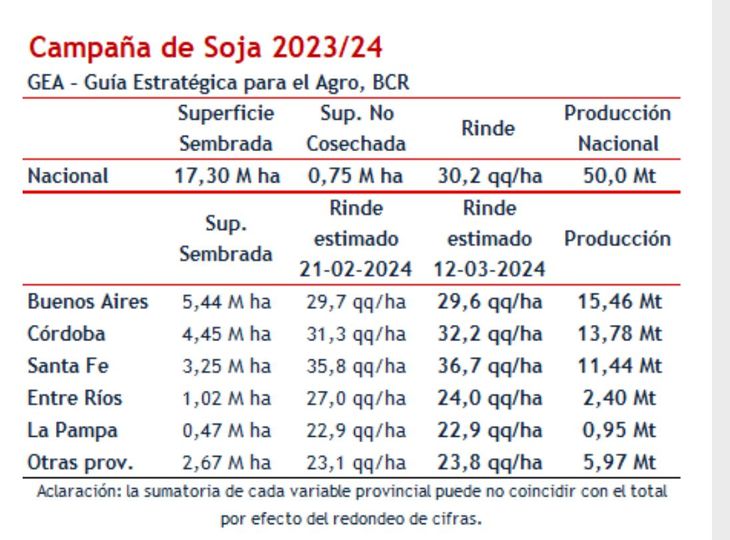 "Se proyecta una cosecha total de 50 millones de toneladas, lo que representa un aumento modesto, pero alentador con respecto al ciclo anterior", advierte el documento de la BCR.