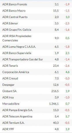 En Wall Street, por su parte, los ADRs de empresas argentinas cerraron sin una tendencia clara. Los avances más salientes de la rueda los protagonizaron Telecom Argentina (+5,7%); y Corporación América (+4,6%). Por el contrario, los retrocesos más marcados los sufrieron Cresud (-5%); y Tenaris (-2,6%).