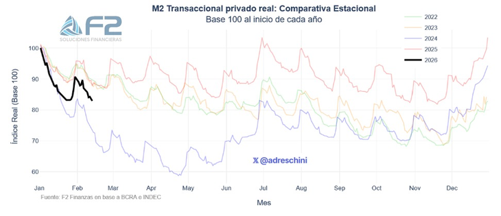 El analista remarcó que el cambio también se refleja en los plazos ofrecidos. “En noviembre y diciembre el tramo más corto era a 90 días. En enero, cuando querían absorber más pesos, empezaron a ofrecer a 45 días. Ahora vuelven a estirar duration: te ofrecen vencimientos al 15 de mayo, un poco más ‘easer’, nada más”, detalló. Para el estratega, la señal es que en esta licitación el Gobierno no busca ser agresivo en la absorción de liquidez, sino simplemente refinanciar lo que vence y sostener la estabilidad del mercado de pesos.