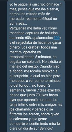 En este sentido, el reconocido estratega en Twitter dijo: "Seamos realistas, no estoy prometiendo el oro y el moro, puede suceder porque soy humano en que un mes la rentabilidad sea negativa, ok? Esto nace porque la mayoría no puede tradear full time. Cosa que yo si puedo hacer el 85% de las veces. Insisto, no me voy a quemar con esto porque está en juego mi futuro. Paso a paso. Es prueba y error, no tengo ningún libreto".