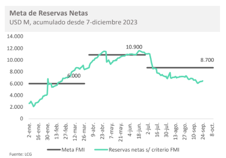 Más allá de la pax cambiaria que implicó la baja de la brecha durante las últimas semanas y del fuerte crecimiento de los depósitos producto del blanqueo, las preocupaciones por el agujero de divisas siguen a la orden del día de cara al último trimestre de 2024 y, sobre todo, a un desafiante 2025. El foco pasa por las reservas netas, que ya son negativas en más de u$s5.000 millones y quedaron bien por debajo de la meta pactada con el Fondo Monetario Internacional para el tercer trimestre.