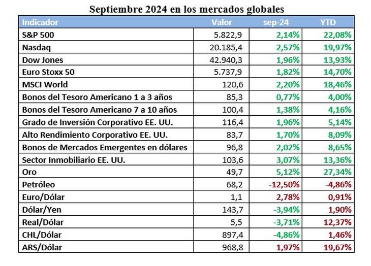 El noveno mes del año, históricamente el más débil para el mercado de valores tuvo un muy buen final, a raíz de la decisión del banco central estadounidense de recortar las tasas de interés en 50 puntos básicos.