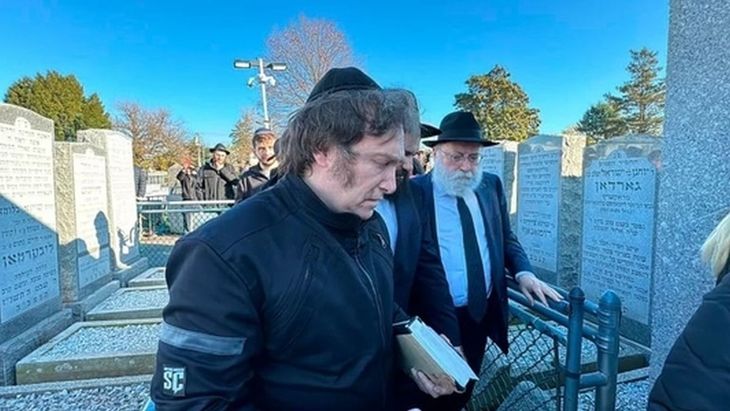 En la primera parada técnica de su recorrido, en Nueva York, Milei acudió a "El Ohel" a "dar las gracias por el lugar que le ha dado Hashem".