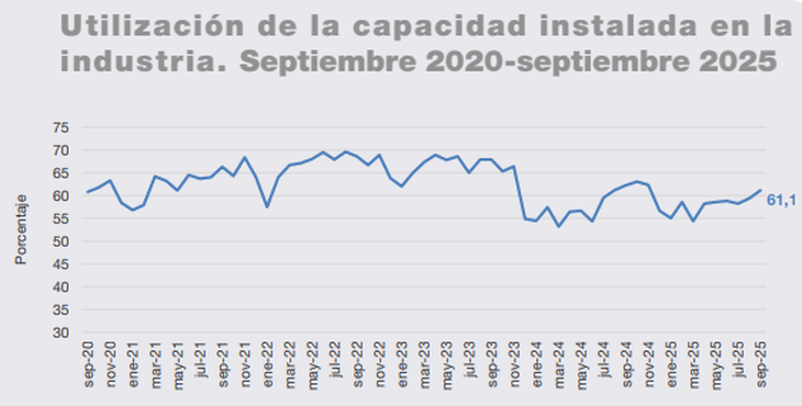 La industria utilizó el 61,1% de su capacidad instalada en septiembre.
