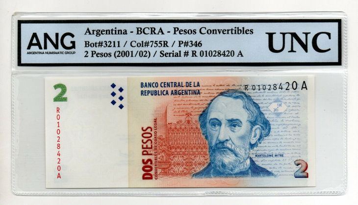 En esta ocasión se trata de los ejemplares de 2 pesos argentinos. Este billete supera su valor nominal porque, además de ya no estar en circulación, tiene errores de impresión.