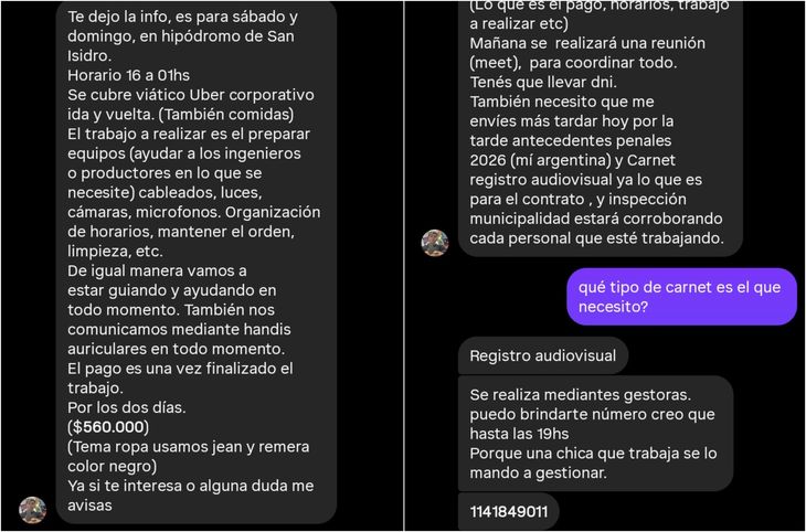 También se recomienda verificar siempre la información en sitios web oficiales de las compañías, desconfiar de publicaciones en redes sociales que prometen accesos a los shows, evitar compartir datos personales o documentos con desconocidos y revisar el perfil de quien ofrece el supuesto trabajo (muchas cuentas utilizadas para estafas son recientes o tienen poca actividad).