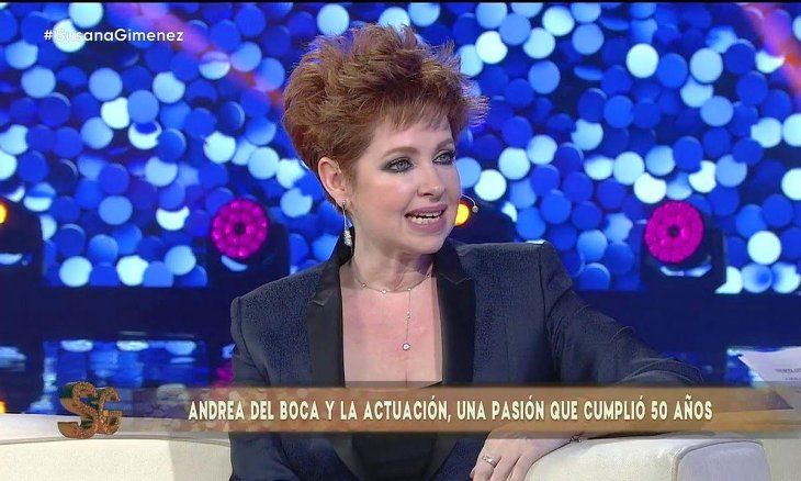 Andrea del Boca en el living del programa de televisión de Susana Giménez.