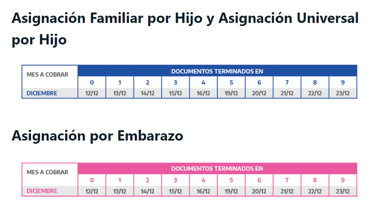 AUH y AUE: Calendario de pagos diciembre