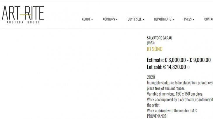 El artista italiano Salvatore Garau logró vender una escultura inmaterial titulada "Yo soy", que es completamente invisible y según sus indicaciones "debe colocarse en una casa particular dentro de un espacio libre de cualquier obstrucción", por 18.300 dólares en la casa de subastas Art-Rite.