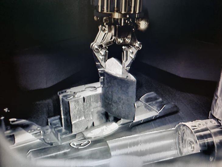Una vez finalizado el corte, se introdujo la herramienta de extracción, lo cual permitió sujetar cada uno de los trozos del separador cortado y colocarlo en la herramienta canasto para su retiro del reactor.