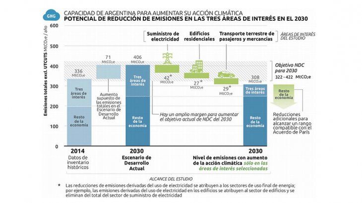 Si acelera sus planes para reducir las emisiones de gases de efecto invernadero, la Argentina podría transformarse en un "líder climático" para 2050. El plan de ruta debería estar enfocado en tres áreas estratégicas y altamente contaminantes: suministro eléctrico, edificios residenciales y transporte terrestre.