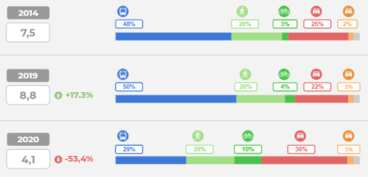 Según el informe de División Modal 2020 de la Ciudad de Buenos Aires.